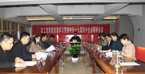 三湘统战网11月15日(通讯员 郑心怡)11月15日,农工党常德市委召开专题会议,组织学习贯彻中共十九届四中全会精神。农工党常德市委主委杨健全主持会议并讲话。本次会议也是农工党常德市委班子成员率先学习、深入进行“不忘合作初心,继续携手前进”主题教育活动的一个实际举措。
