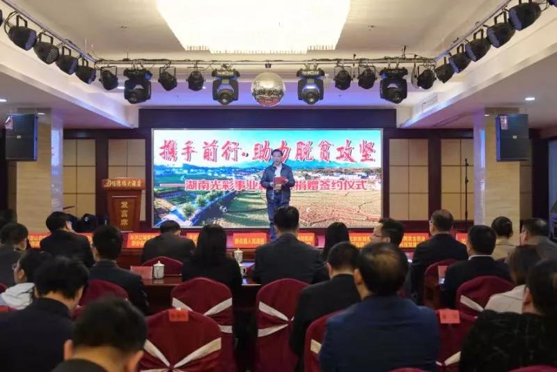 11月15日,“湖南光彩事业新化行”活动在娄底新化举行,活动共捐赠现金220万元,捐赠健康扶贫项目390万元,签订消费扶贫协议3个,金额过亿元,签订产业扶贫协议3个,助力新化脱贫攻坚。