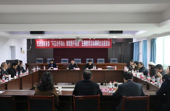 三湘统战网11月27日讯(通讯员 李佩)11月26日,民进湖南省委副主委刘新民率队,民进省委宣传联络处处长吴壮力任组长,民进省委调研组一行到衡阳开展“不忘合作初心,继续携手前进”主题教育调研走访并召开座谈会。衡阳市政协副主席、民进市委主委陈淼出席并主持会议,民进湖南省委监督委员会委员、民进衡阳市委副主委曾海燕作为调研组成员出席会议。