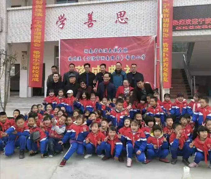 宁波市湖南商会积极响应家乡号召,决定聚焦怀化溆浦贫困山区困难学校开展教育帮扶。商会赴溆浦开展了专题调研,经过实地考察,了解到部分学校教学条件简陋、校舍老旧,有的还已成危房,学生读书无安全保障。根据调查了解的情况,商会决定在溆浦县低庄镇夜珠溪村帮助建设一所希望小学,用实际行动支持家乡教育事业,并为此进行了2次内部募捐,共筹资30多万元。在学校奠基仪式上,执行会长廖宗光代表商会现场捐赠30万元。为保障学校如期竣工,商会委托副会长李显伟对工程进度进行了持续跟进,直至如期竣工。