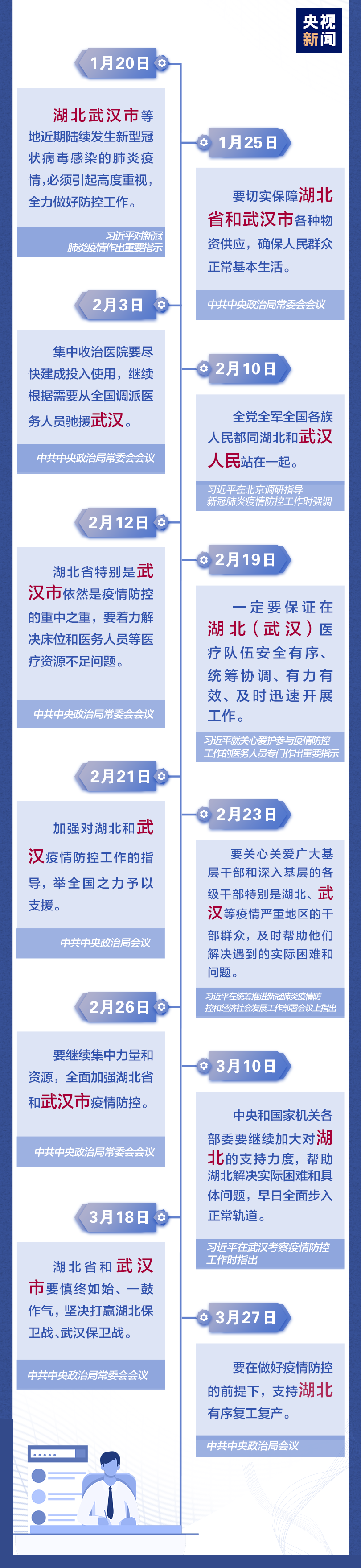 正月初一以来,习近平总书记先后9次主持召开中央政治局常委会会议专题研究疫情防控工作,每次会议都会专门提到武汉,提出针对性极强的要求。