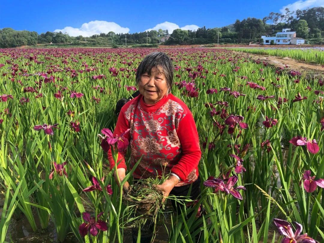 目前该项目已吸纳本村村民60余人稳定就业、100余人流动就业,仅去年一年,华懿公司就向村民累计结算了近50万元劳务工资。村民在家门口轻松就业,周理湘功不可没。村民周某泉就是受益人之一。因为轻度智障的缘故,周某泉只能在家附近打打零工,收入并不稳定。在周理湘的帮助下,周某泉和他的母亲,成为了鸢尾花种植基地的一员,每天在田地里干劲十足。