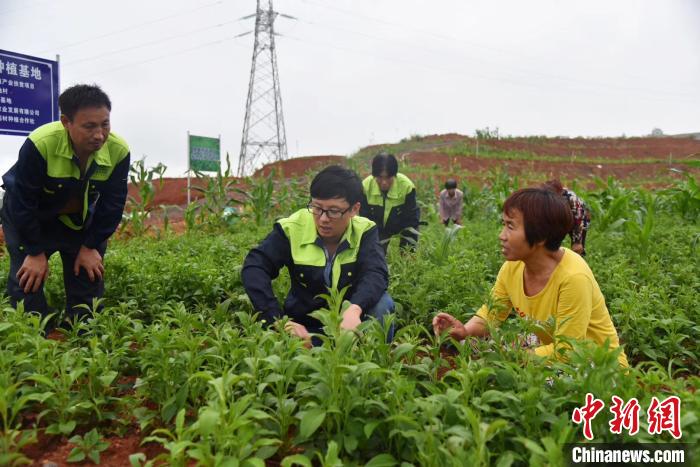 湖南绿佰珍生物科技发展有限公司在祁东县白地市村设中药材种植基地,并指导贫困户种植白术等中药材。民建湖南省委会供图