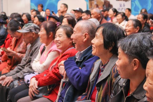 东沙剧场里,居民们兴致勃勃地看着花鼓戏,85岁高龄的卢巧珍“开”着电动轮椅特意来“赶场”:“我腿脚不好,去不了远的地方,平时就喜欢在家里看看戏,听听戏,今天听说来了戏,特意来的,这可比电视里要韵味多了!”