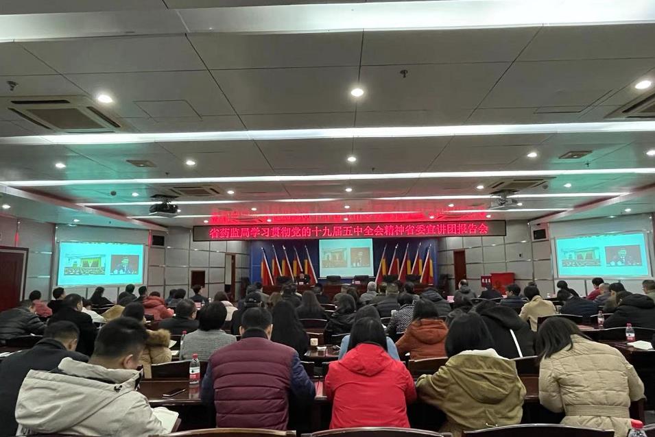 省药监局机关和院内直属单位全体干部职工、院外直属单位班子成员参加报告会。