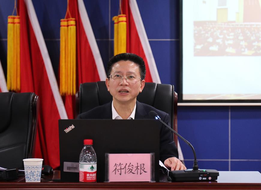 符俊根围绕习近平总书记在党的十九届五中全会上的重要讲话精神和全会审议通过的《中共中央关于制定国民经济和社会发展第十四个五年规划和二〇三五年远景目标的建议》,结合习近平总书记考察湖南重要讲话精神,从全会召开的重大意义、2035年远景目标和“十四五”时期我国发展的指导方针、主要目标、重点任务等方面,对全会精神进行了全面系统宣讲解读。