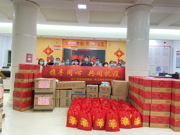 8月13日下午,农工党省委会、长沙市委会赴开福区望麓园街道营盘街社区开展“携手同心 共同抗疫”捐赠活动,为奋战在新冠肺炎疫情防控一线的社区工作人员、志愿者、清扫员送上亲切关怀和慰问。