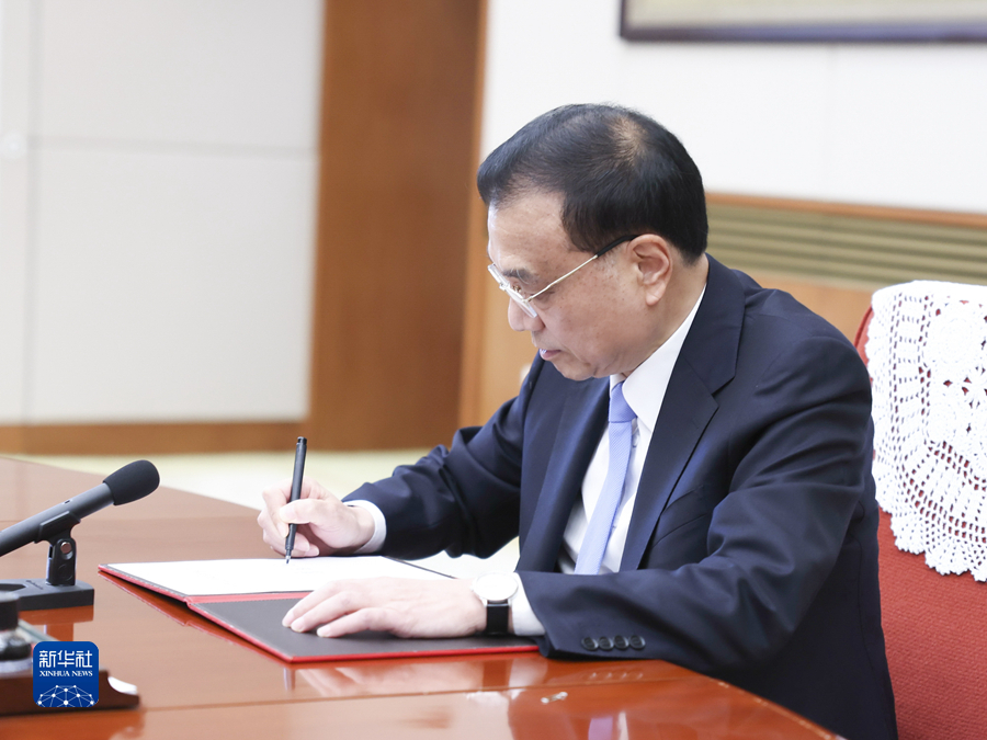 5月20日,国务院总理李克强在北京主持召开国务院第七次全体会议,决定任命李家超为香港特别行政区第六任行政长官,于2022年7月1日就职。这是李克强总理签署任命李家超为香港特别行政区第六任行政长官的国务院第754号令。新华社记者 丁林 摄