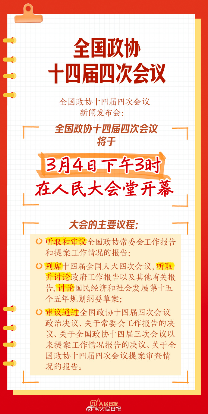 全国政协十四届四次会议将于3月4日下午3时在人民大会堂开幕。关于政协你了解多少?政协的主要职能有哪些?政协委员如何产生?一组两会学习笔记↓↓收藏,学习,共同期待!