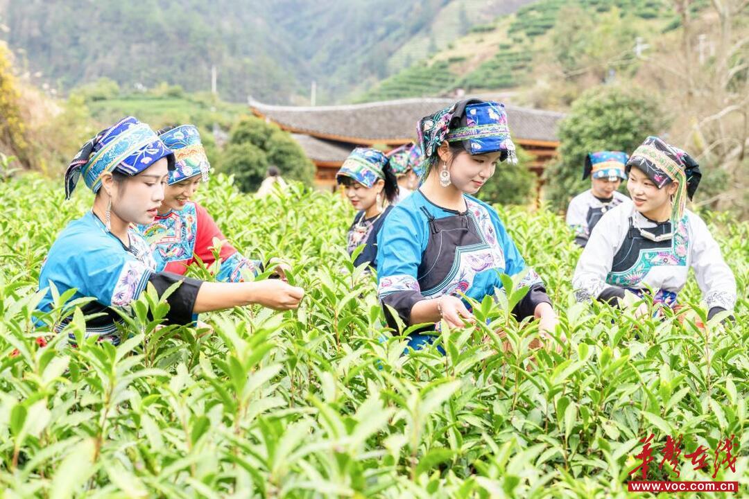 3月3日,2026湖南·保靖黄金茶茶文化旅游季,茶农们在开采仪式后采摘首批春茶鲜叶。